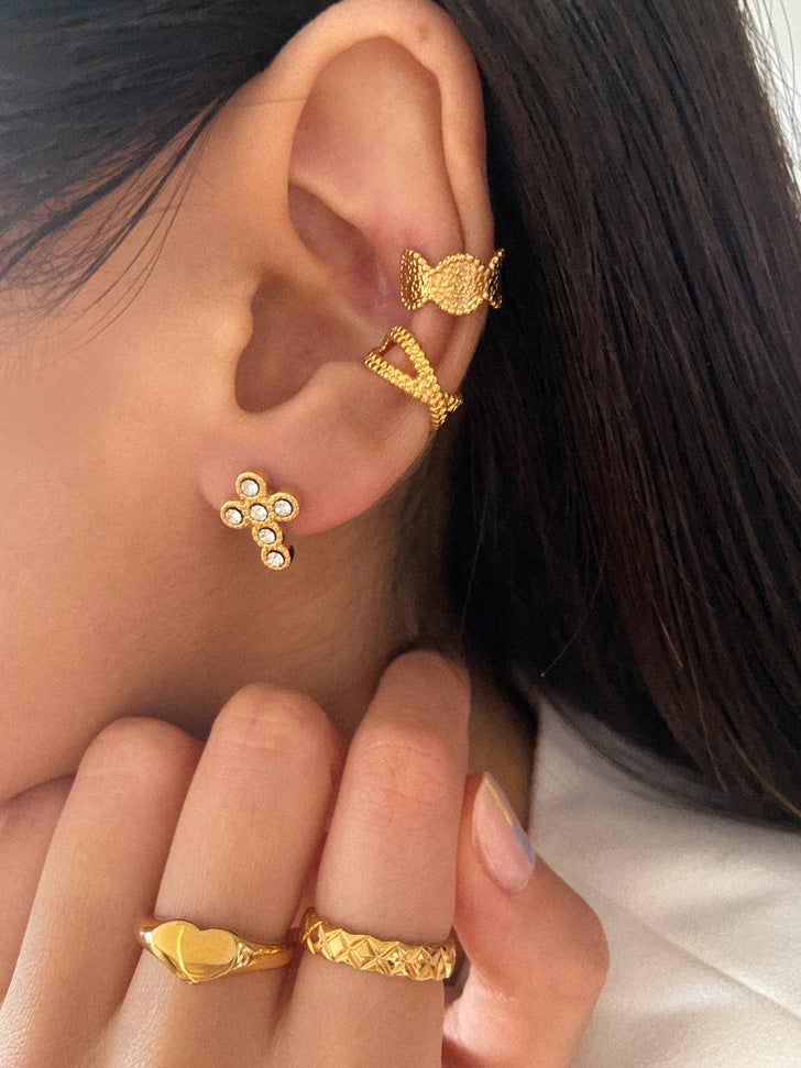 Nos bijoux, en acier inoxydable plaqué or 18 carats (1,5 micron), sont fabriqués avec la technique du dépôt sous vide pour assurer une longue durée de vie. Bien que le placage puisse s'user avec le temps selon l'environnement et l'utilisation, cette méthode garantit une durabilité optimale.